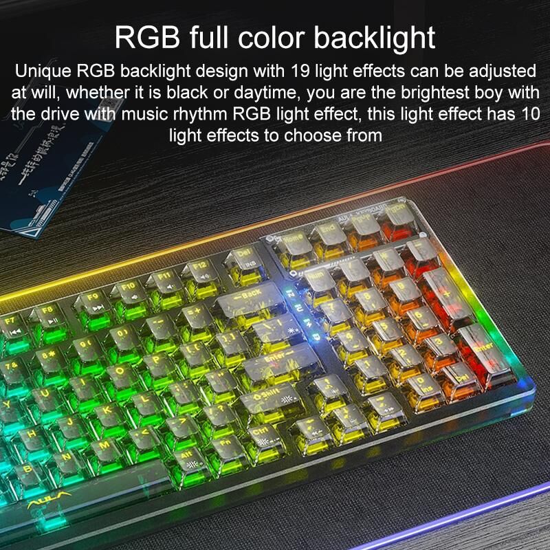 AULA F98 Pro 99 Keys Wired/2.4G/Bluetooth Three Model RGB Mechanical Keyboard, Shaft:Ice Soul Shaft(Transparent Black) (AULA)