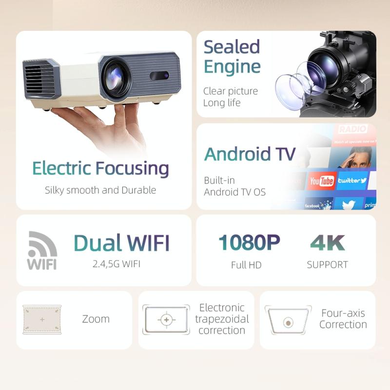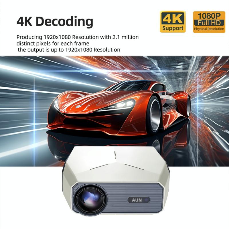 AUN A004 Pro 1920 x 1080P 9000Lumen Android 9.0 Portable LCD Projector, EU Plug(White) (AUN)