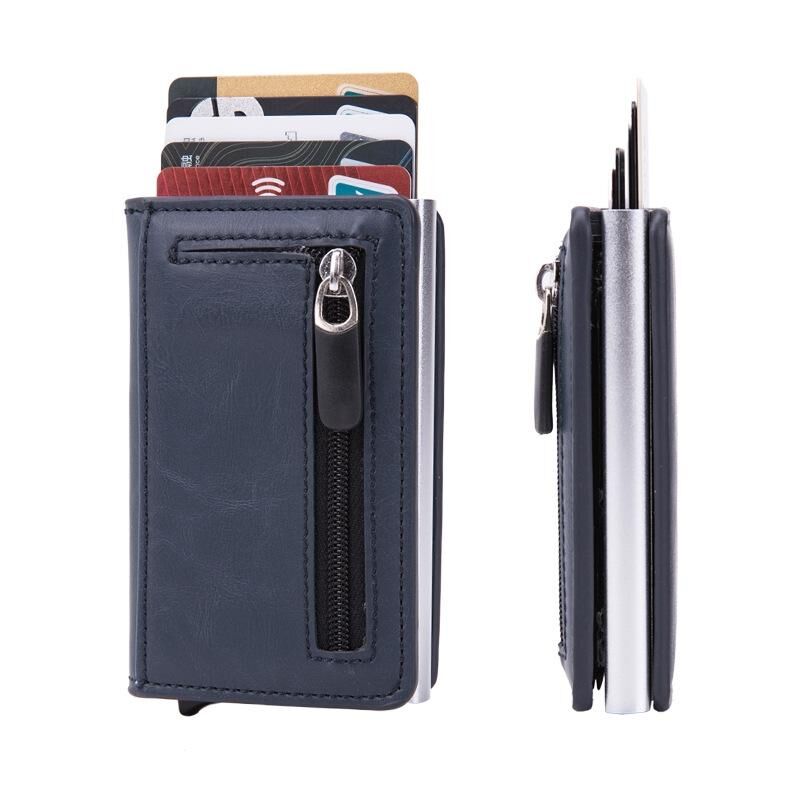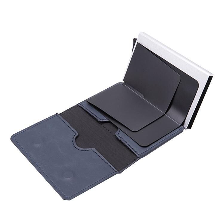 Automatic Cartridge Male Ladies Stainless Steel Credit Card Package RFID Business Card Box(Blue)
