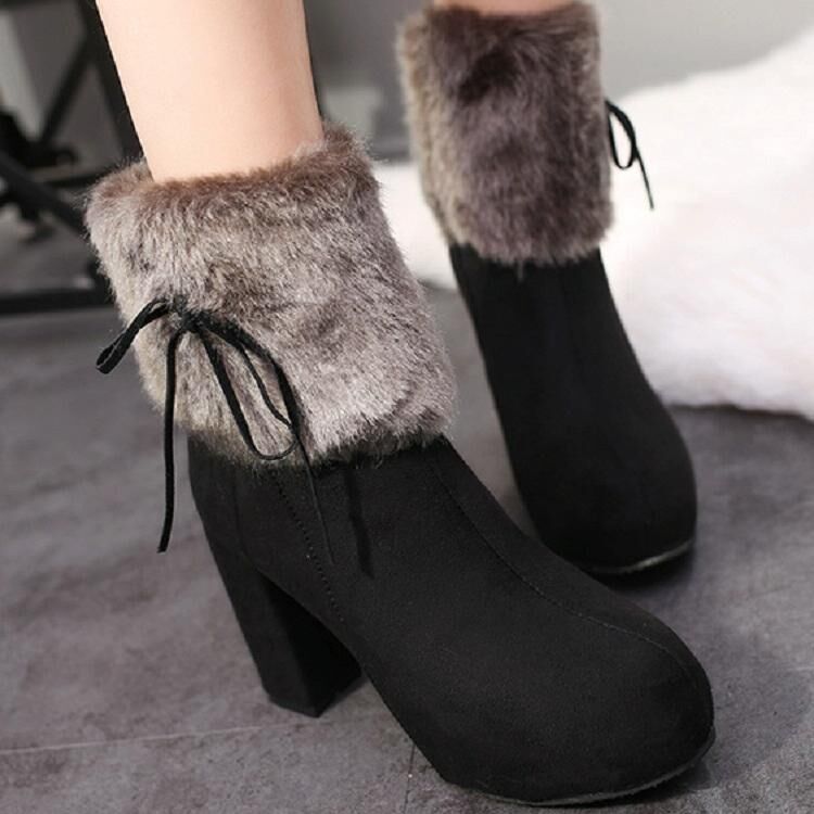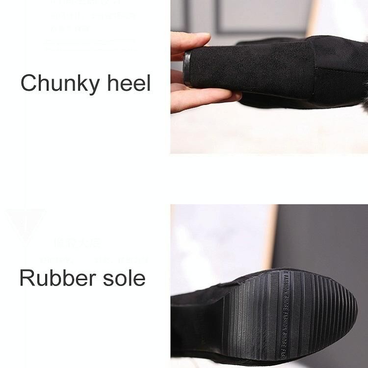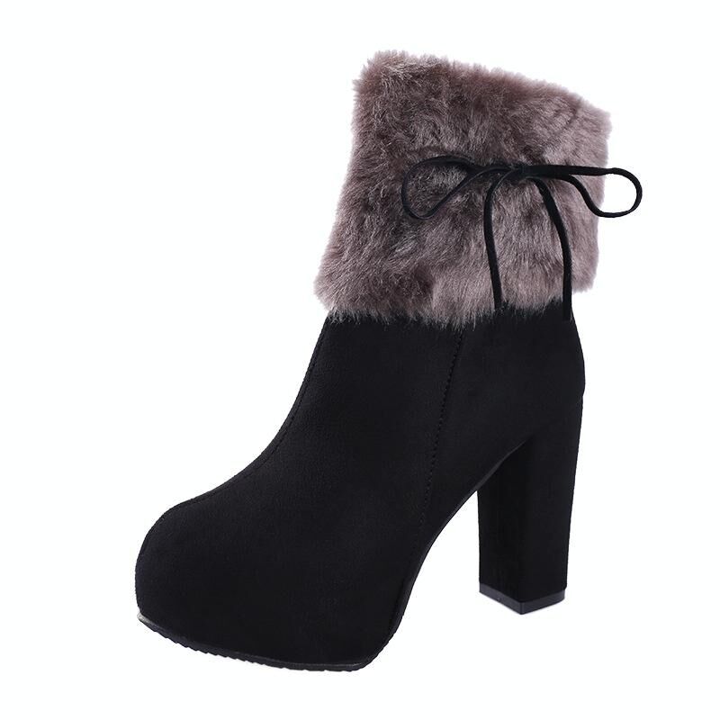Φθινόπωρο και χειμώνα παχύ ψηλό τακούνι ενισχυμένο ζεστό σουέτ γύρω από τις μπότες, μέγεθος: 33 (μαύρο)