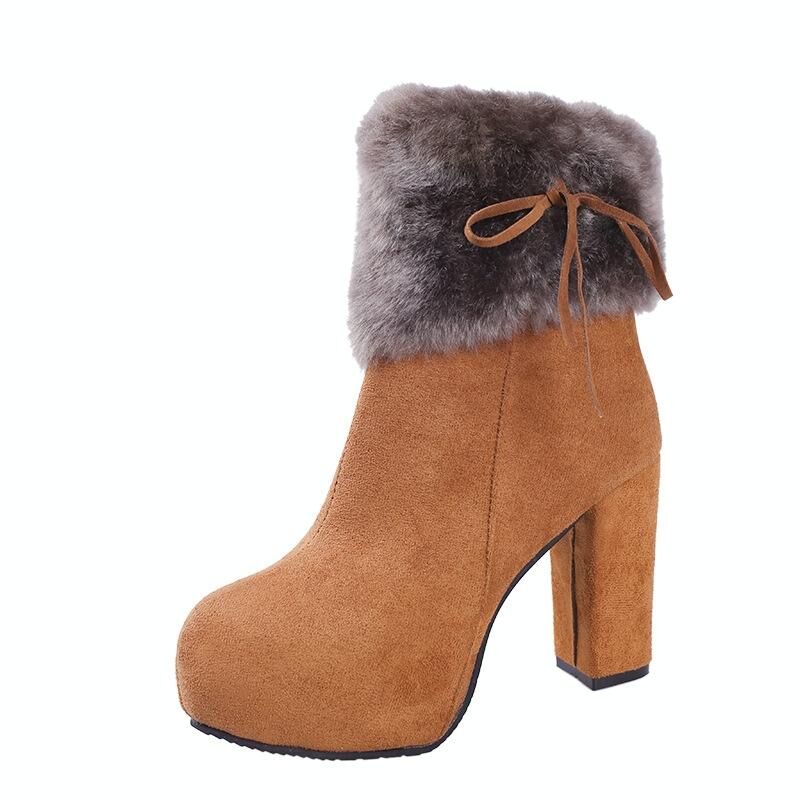 Φθινόπωρο και χειμώνα παχύ ψηλό τακούνι ενισχυμένο ζεστό καστόρινο στρογγυλό δάχτυλο μπότες, μέγεθος: 37(Camel)