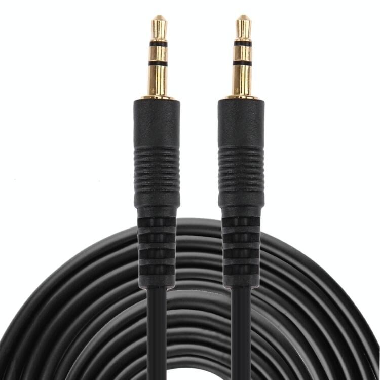 Καλώδιο Aux, 3.5mm αρσενικό μίνι βύσμα στερεοφωνικού ήχου, μήκος: 10m (μαύρο + επίχρυσο βύσμα)