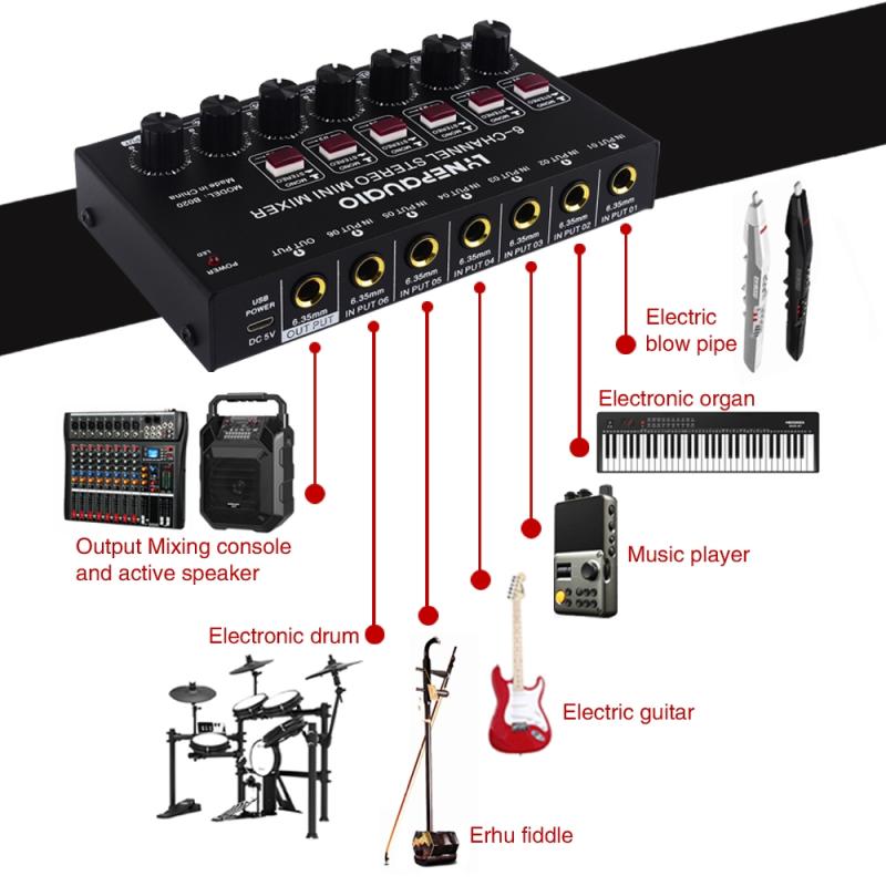 4. Wide range of applications: mixer for most electronic musical instruments mixing, a wide range of applications.
