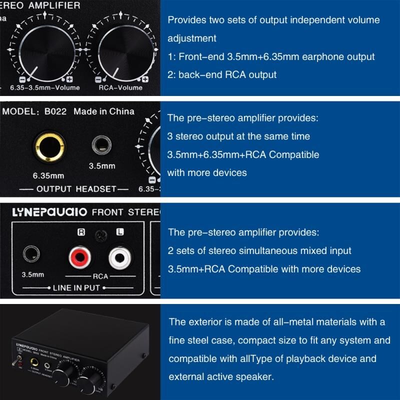 B022 Pre-Stereo Signal Amplifier Volume Booster Headphones Active Speaker Preamp Audio Amplifier