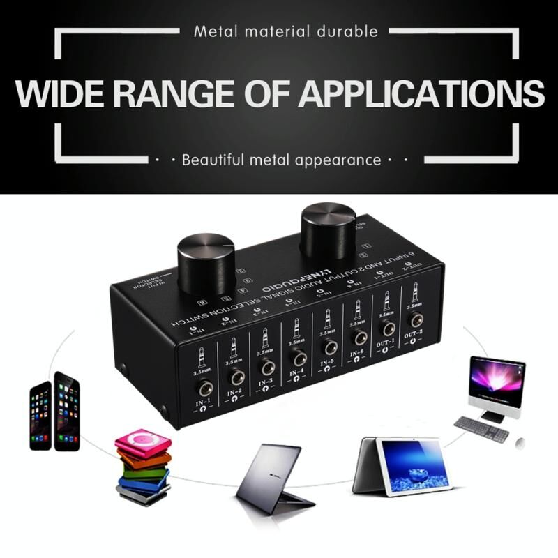 Το προϊόν χρησιμοποιείται κυρίως για την επιλογή και την εναλλαγή μεταξύ μιας ποικιλίας εισόδων και εξόδων στερεοφωνικού σήματος μέσω ενός κοινού συνόλου ή πολλαπλών συνόλων εξοπλισμού, δηλαδή μιας ποικιλίας πηγών στερεοφωνικού σήματος συσκευών, όπως ήχος τηλεόρασης, συσκευή αναπαραγωγής MP3, συσκευή αναπαραγωγής CD, βιντεοπαιχνίδι, κινητό τηλέφωνο, tablet, υπολογιστής, πικάπ, που πρέπει να εξέλθουν στον ενισχυτή ή σε ενεργά ηχεία,