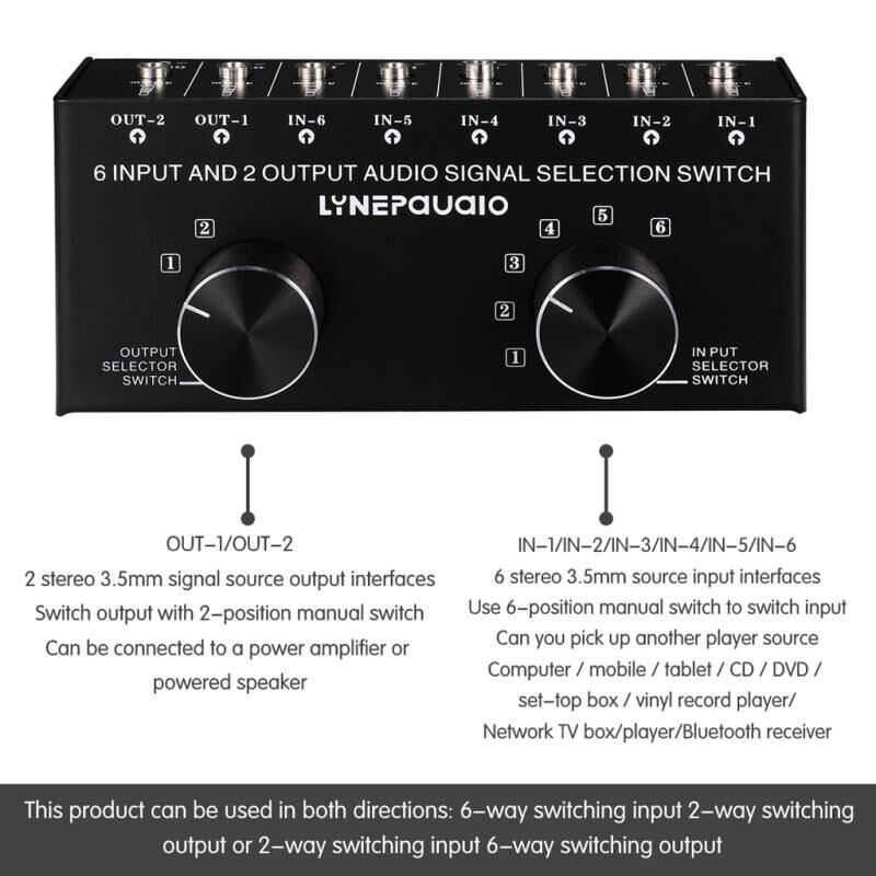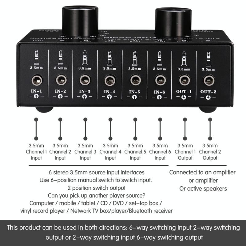 1 X Επιλογέας σήματος στερεοφωνικού ήχου 6 εισόδων 2 εξόδων ή 2 εισόδων 6 εξόδων, διεπαφή 3,5mm