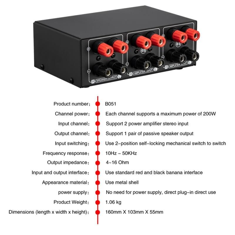 1. Η ισχύς υποστήριξης είναι 200 watt: 1 και 2 ενισχυτές ισχύος με 1 ζεύγος επιλογικών διακοπτών ηχείων, ιδανικοί για συστήματα ήχου οικιακού κινηματογράφου, ισχύς 200 watt ανά κανάλι, κατάλληλοι για ηχεία αντίστασης 4-16 Ω, με συμπαγή λεπτό σχεδιασμό γραφείου, συμβατό με κάθε περιβάλλον οικιακού κινηματογράφου.