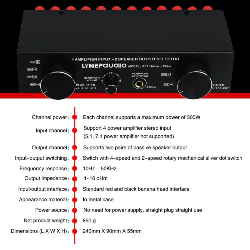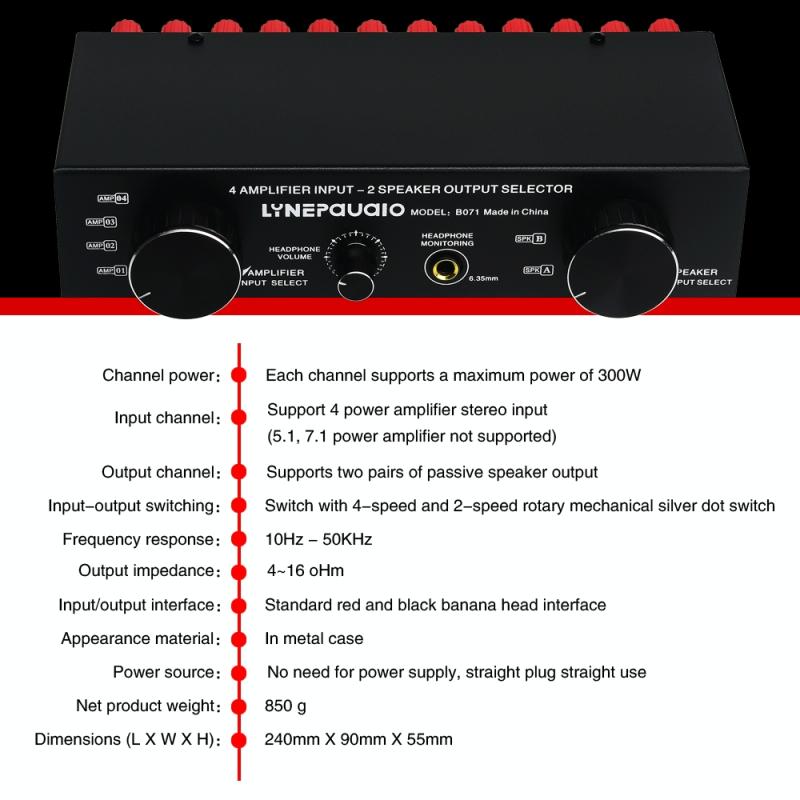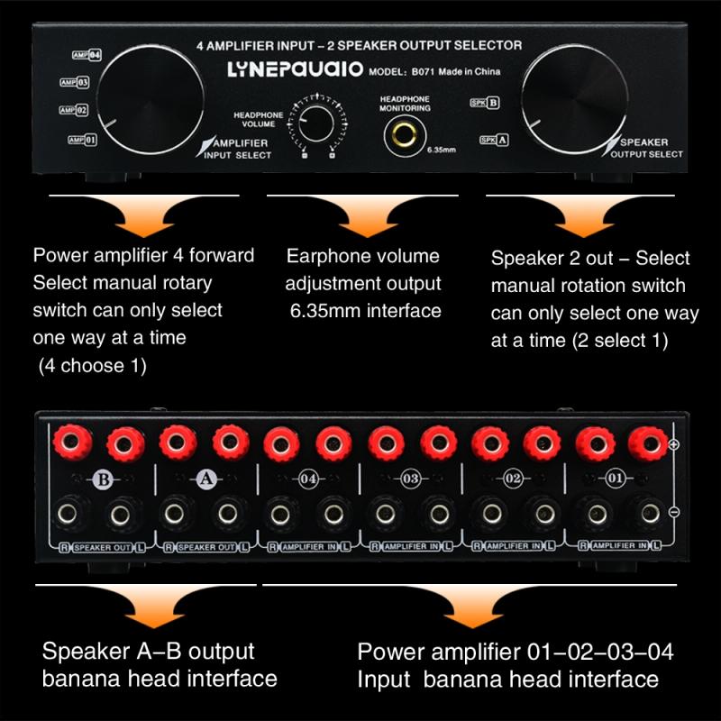 1 X 4 In 2 Out or 2 In 4 out Power Amplifier Speaker Select Switcher