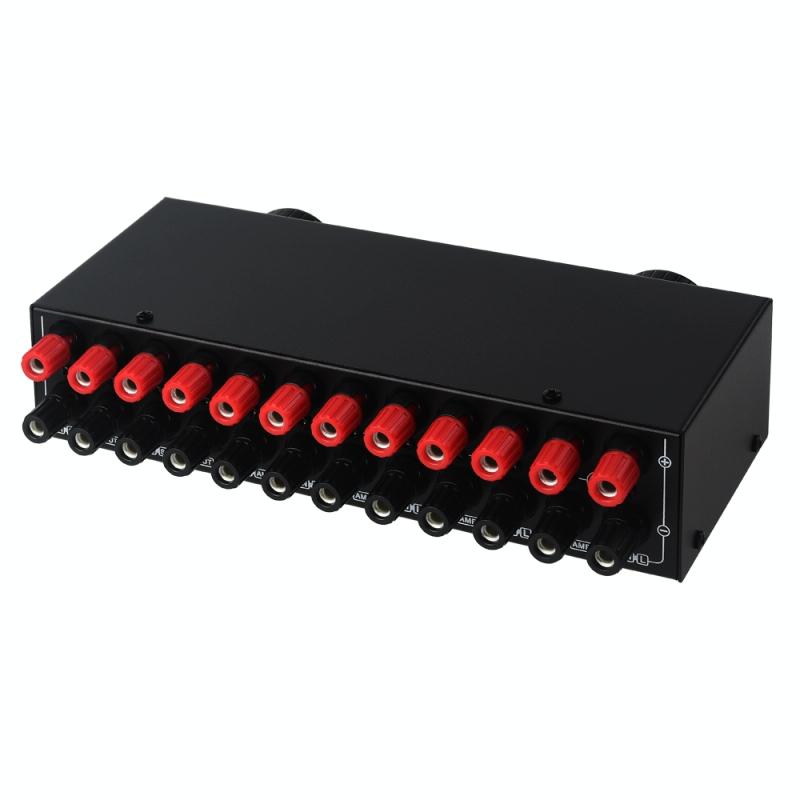 2. Groups of stereo speaker gear switch rotary selection switching output, the device supports two modes of use,forward access 4 power amplifiers and 2 groups of speakers, reverse access 2 power amplifiers and 4 groups of speakers.