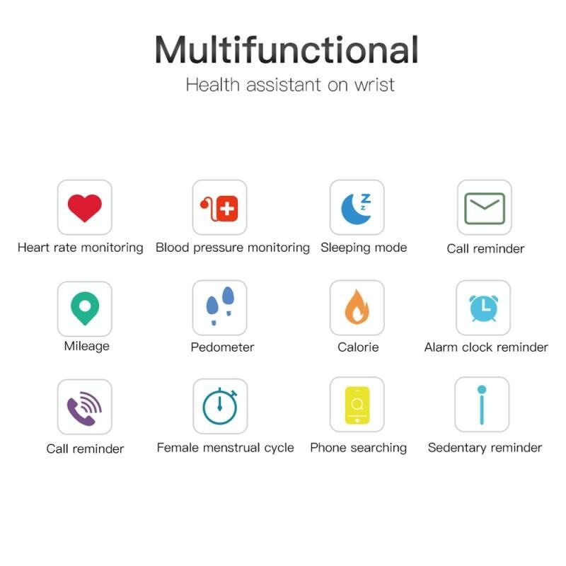 1. Μετρητής βημάτων/θερμίδων/καρδιακών παλμών/απόστασης/συνεχής παρακολούθηση καρδιακών παλμών/πίεση αίματος/παρακολούθηση ύπνου