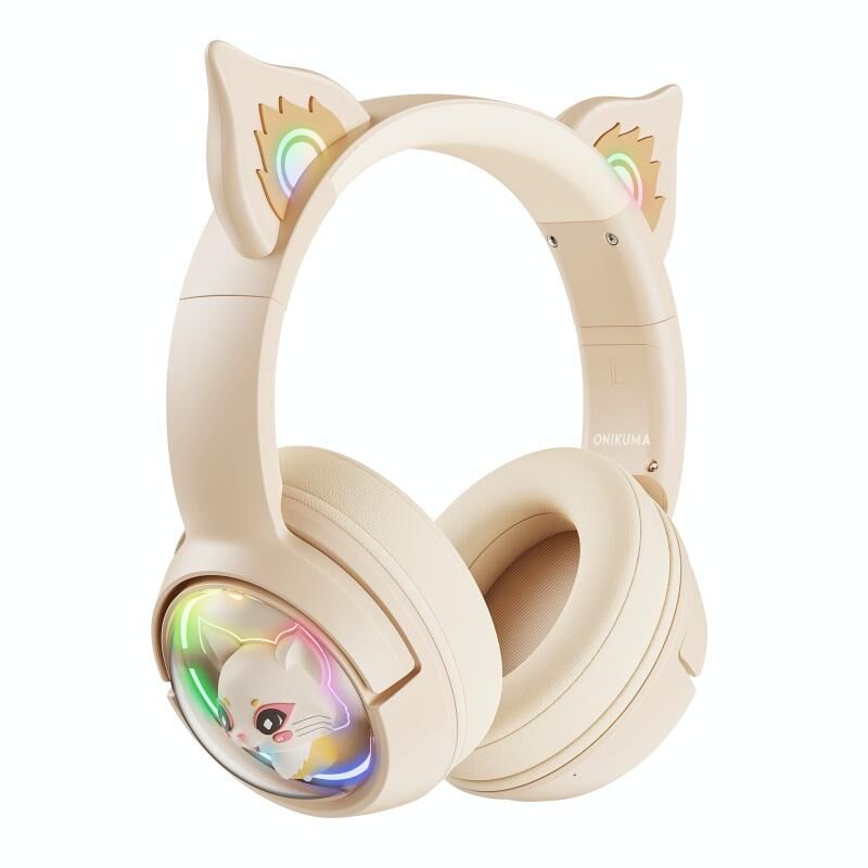 B5 Cat Ear Design USB-C / Type-C RGB Wireless Bluetooth HiFi Headset (Beige)