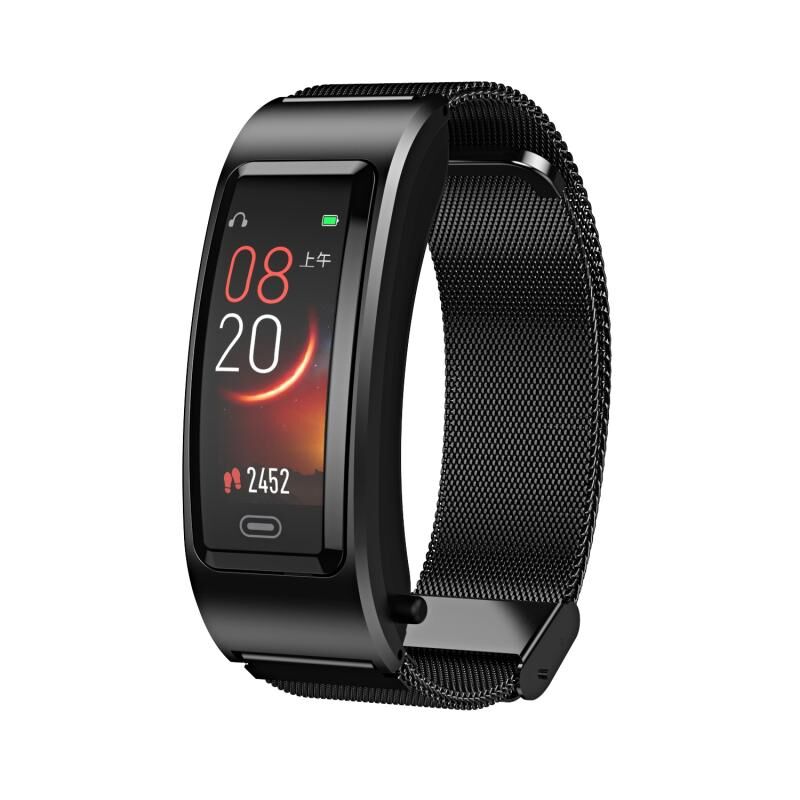Βραχιόλι Bluetooth ακουστικών B7, Υποστήριξη παρακολούθησης ύπνου / παρακολούθησης οξυγόνου αίματος / παρακολούθησης καρδιακού ρυθμού (Μαύρο + Ατσάλινη αλυσίδα μαύρου χρώματος)