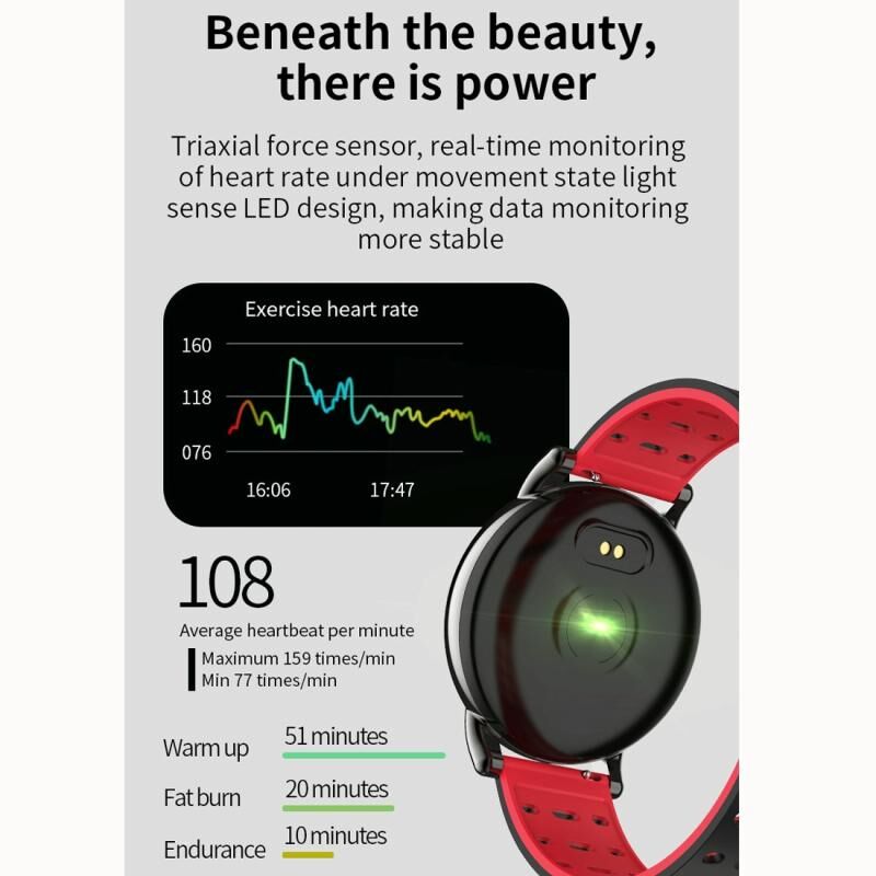 9. Heart rate detection, blood pressure detection (heart rate monitoring),time/clock display, step, calories, distance, sleep time, photo, power on/off display (five dial display)