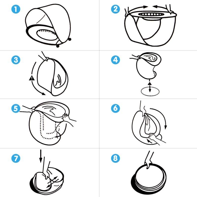 6. Dimensions: unfolded 120 x 80 x 70 cm, folded 53 x 53 x 1 cm