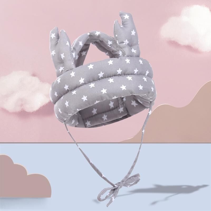 Καπέλο προστασίας κεφαλής για μωρά, αναπνεύσιμο, αντι-πτωτικό, καπέλο ασφαλείας για νήπια, προστατευτικό καπέλο με ενίσχυση, Μοντέλο: Γκρι Αστέρια Κέρατα Ελαφιού.
