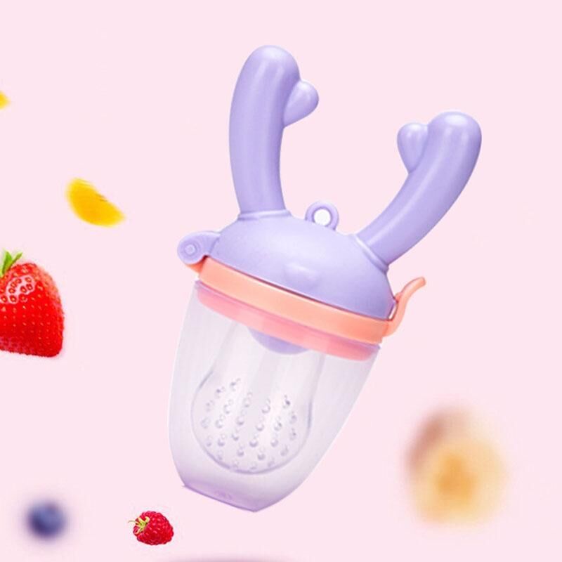 Πιπίλα μωρού με θήκη για φρούτα και λαχανικά, χαριτωμένο σχέδιο ελαφιού, οδοντοφυΐα και θήκη για δάγκωμα φρούτων, Χρώμα: Ροζ.