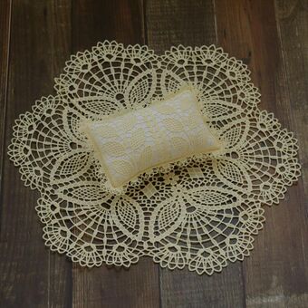 Κεντητή Δαντελένια Στρογγυλή Κουβέρτα + Σετ Μαξιλαριού για Βρεφική Φωτογράφιση (Μπεζ)