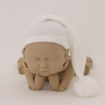 Ρουχισμός για Νεογέννητα για Φωτογράφιση Μωρού, Καπέλο με Μακριά Ουρά από Πλεκτό "Μπαλάκι Γούνας" (Καμηλό)