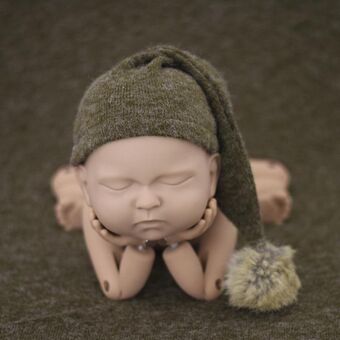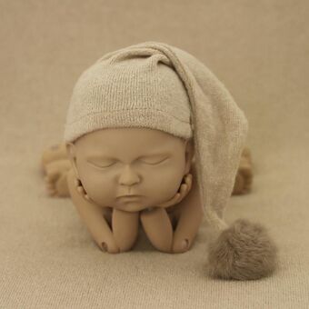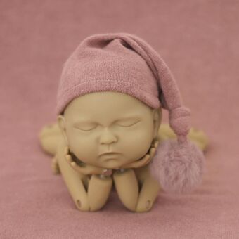 Ρουχισμός για Νεογέννητα για Φωτογράφιση Μωρού, Καπέλο με Μακριά Ουρά από Πλεκτό "Μπαλάκι Γούνας" (Χρώμα Ταρό)