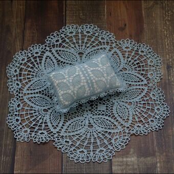 Κεντητή Δαντελένια Στρογγυλή Κουβέρτα + Σετ Μαξιλαριού, Σκηνικά Φωτογράφισης Βρεφών (Λευκό)