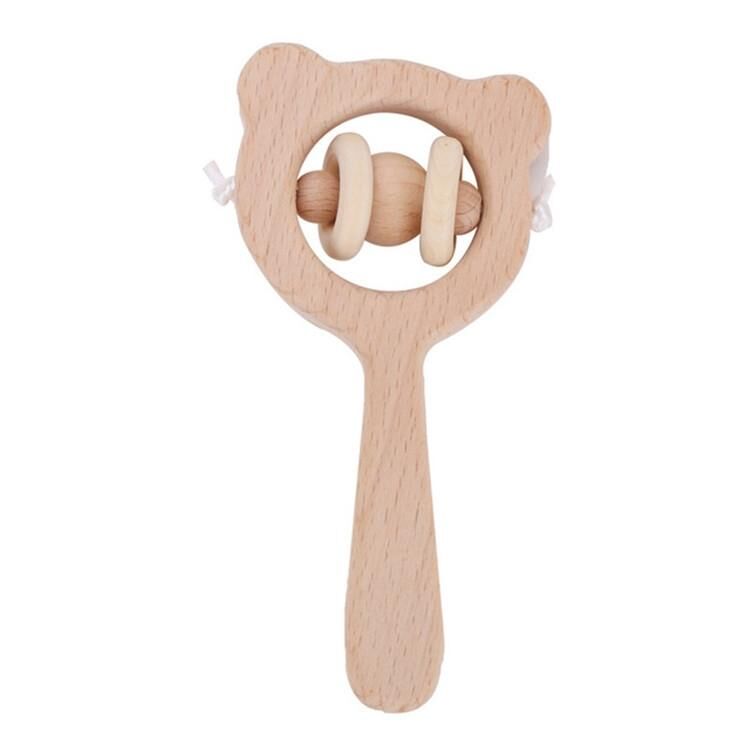 Παιδικό Παζλ Πρώιμης Εκπαίδευσης Κουδουνίστρα Χειρός Ξύλινο Παιχνίδι (Αρκούδα Μεγάλη Χάντρα)