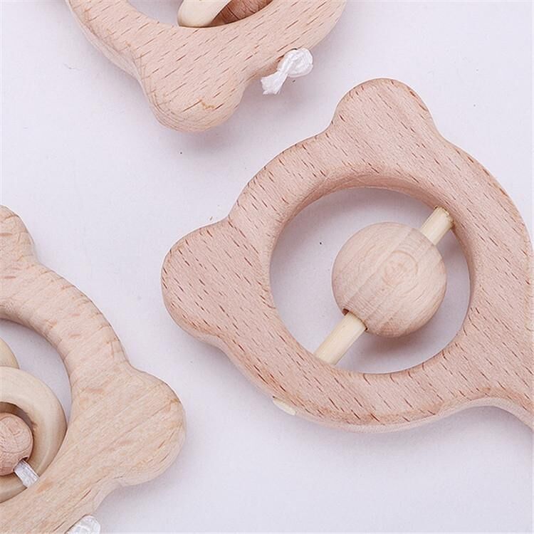 Παιδικό Παζλ Πρώιμης Εκπαίδευσης Κουδουνίστρα Χειρός Ξύλινο Παιχνίδι (Αρκουδάκι Μικρή Χάντρα)