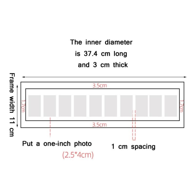 8. 1 ίντσα 10 φύλλα: εσωτερική διάμετρος 11x37,4 cm, μέγεθος φωτογραφίας 2,5x4 cm, βάρος περίπου 740g