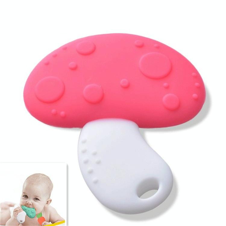 Baby Silicone Teether Children Teeth Molars Baby Products(Rose Red Mushroom)
