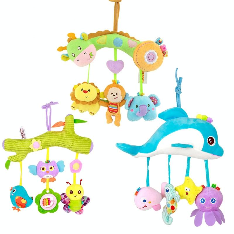 Baby Toys 0-1 Year Old Animal Bed Bells Soothing Plush Toys Baby Rattles Baby Carriage Hanging(A Crossbar - Deer)