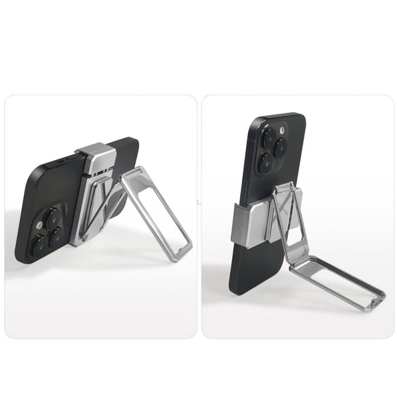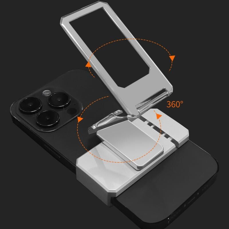 Βάση τηλεφώνου με διπλό δακτύλιο, μαγνητική, μεταλλική, αναδιπλούμενη, για το γραφείο (ασημί).
