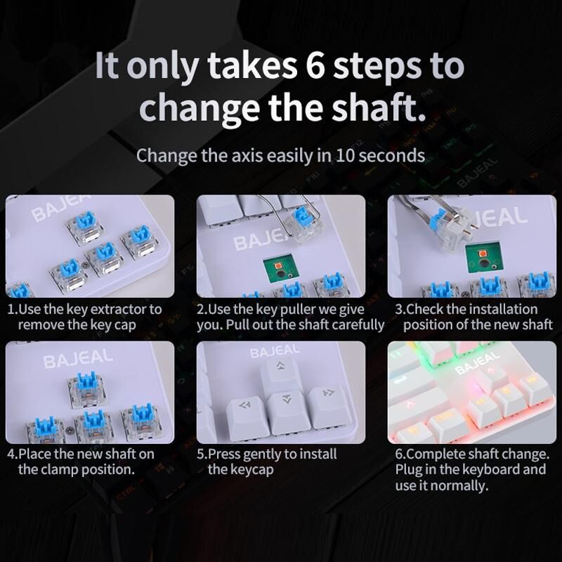 2. Two-color injection moulded key cap, character wear resistance is not easy to fade, the key cap texture is exquisite, no residual fingerprint, life has been greatly improved