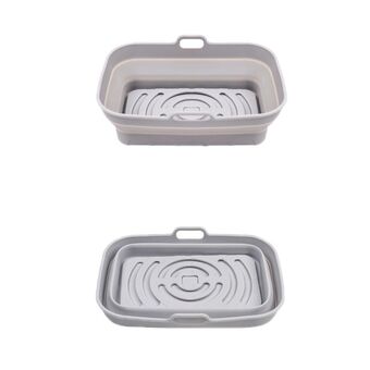Ορθογώνιο διπλό καλάθι τραβήγματος πτυσσόμενο τηγάνι φριτέζας αέρα σιλικόνης (μαύρο)