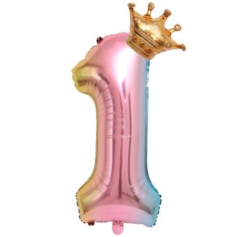 32-Inch Gradient Color Crown Digital Balloon Children Birthday Decoration Film Balloon(Number 1)