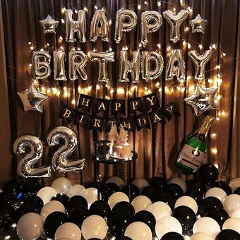 Happy Birthday Girl Boy Aluminum Film Balloon Scene Decoration Set Background Wall Decoration Adult Party Decoration Supplies(Black)