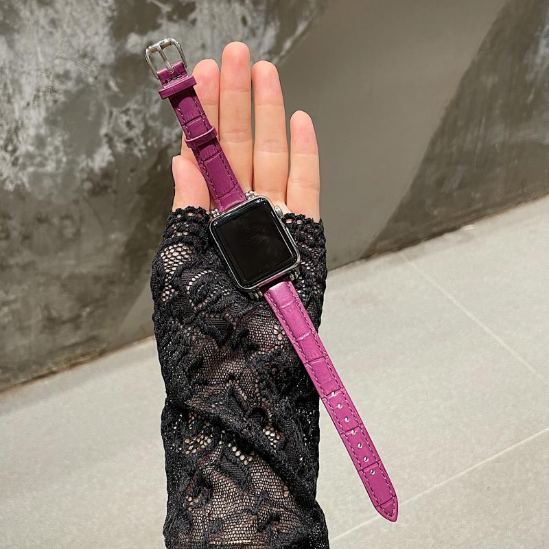 Bamboo Joint with Beads Leather Watch Band Watch Band For Apple Watch Series 9&8&7 41mm / SE 3&SE 2&6&SE&5&4 40mm / 3&2&1 38mm(Purple)