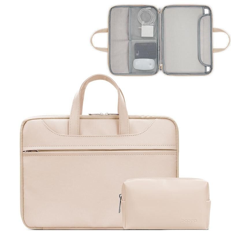 Baona BN-Q006 PU Leather Full Opening Laptop Handbag For 13/13.3 inches(Light Apricot Color+Power Bag) (Baona)