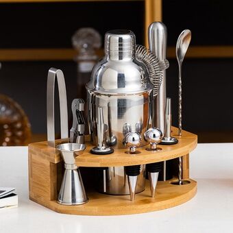 350ml 12 σε 1 από ανοξείδωτο χάλυβα μπάρμαν ξύλινη βάση σετ εργαλείων κοκτέιλ μπαρτέντινγκ κοκτέιλ