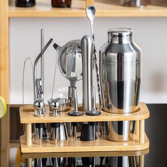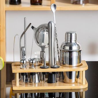 700ml 12 σε 1 από ανοξείδωτο χάλυβα μπάρμαν ξύλινη βάση σετ εργαλείων κοκτέιλ μπαρτέντινγκ κοκτέιλ