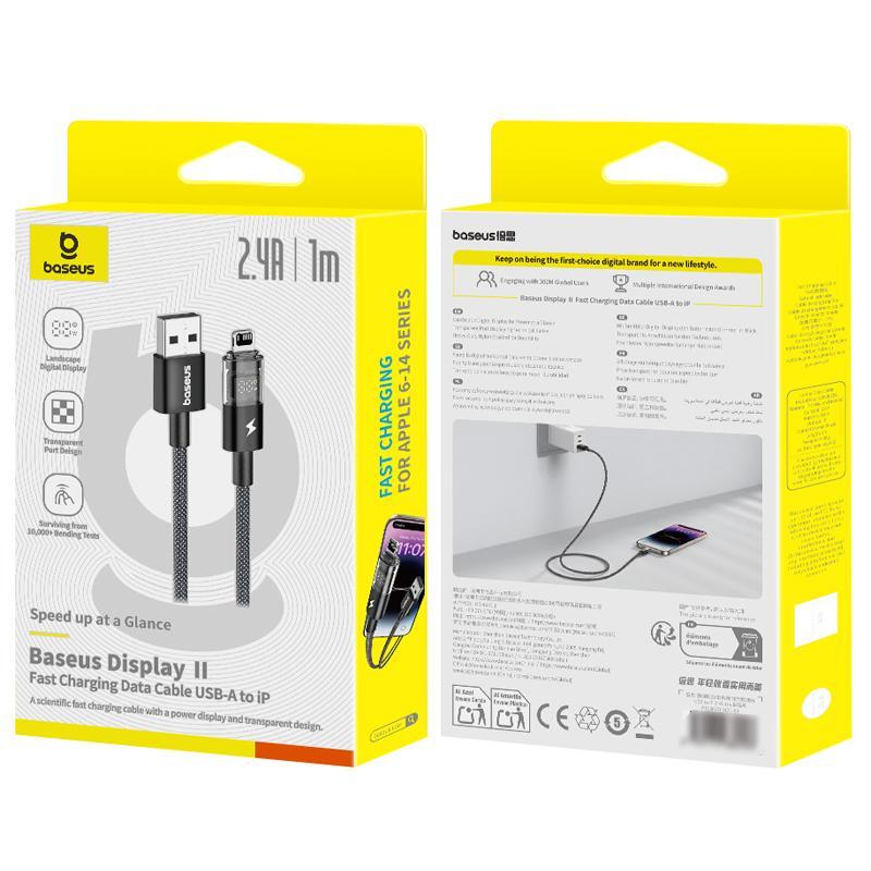 Baseus Display 2.4A USB-A to 8 Pin Fast Charging Cable, Length:1m(Black) (Baseus)