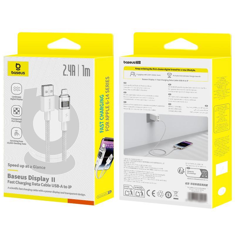 Baseus Display 2.4A USB-A to 8 Pin Fast Charging Cable, Length:1m(White) (Baseus)