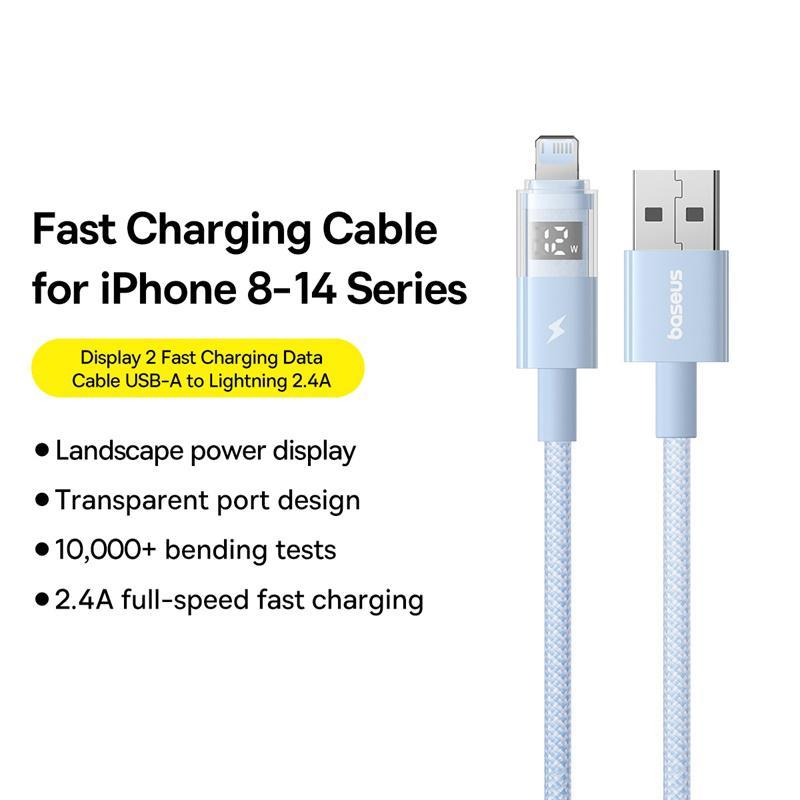 Baseus Display 2.4A USB-A to 8 Pin Fast Charging Cable, Length:2m(Blue) (Baseus)