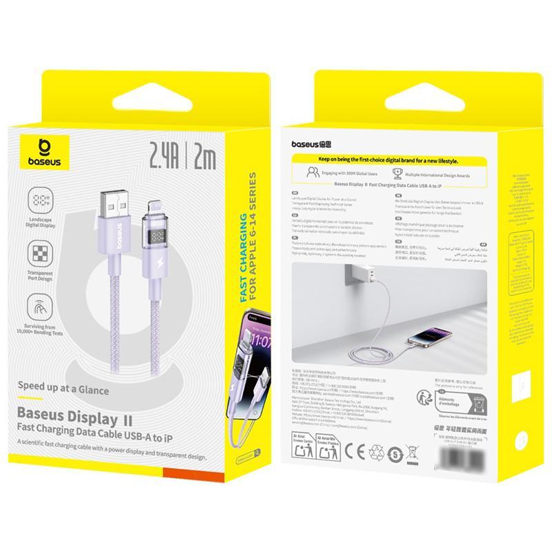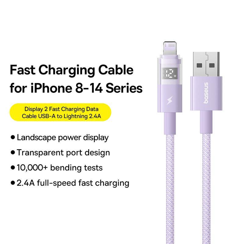 Baseus Display 2.4A USB-A to 8 Pin Fast Charging Cable, Length:2m(Purple) (Baseus)