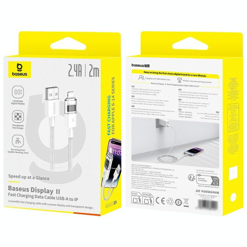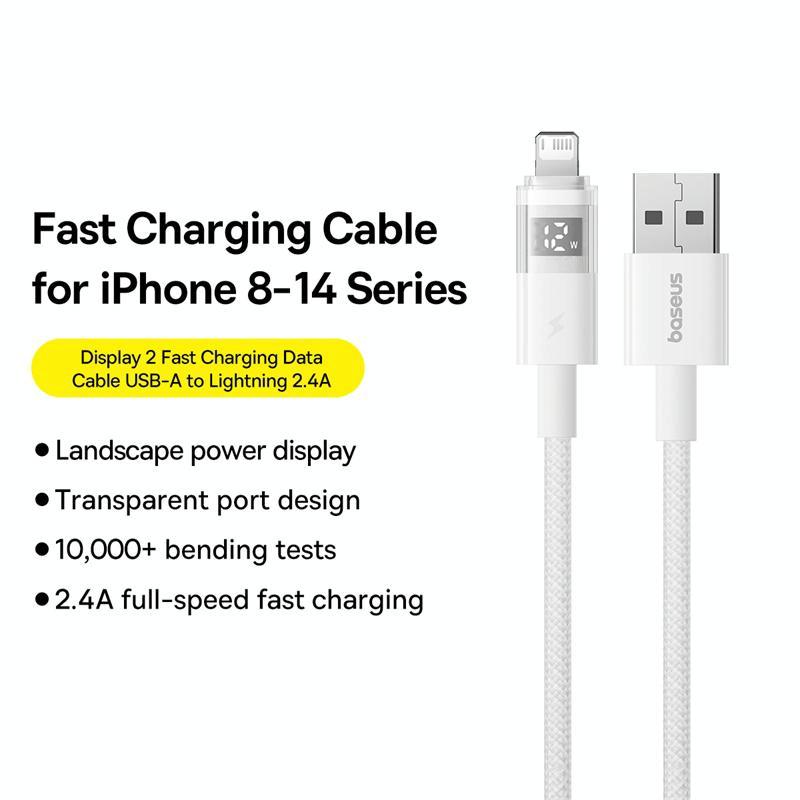 Baseus Display 2.4A USB-A to 8 Pin Fast Charging Cable, Length:2m(White) (Baseus)