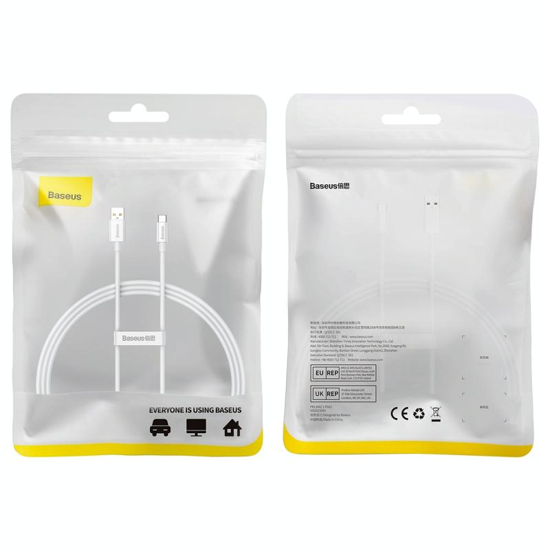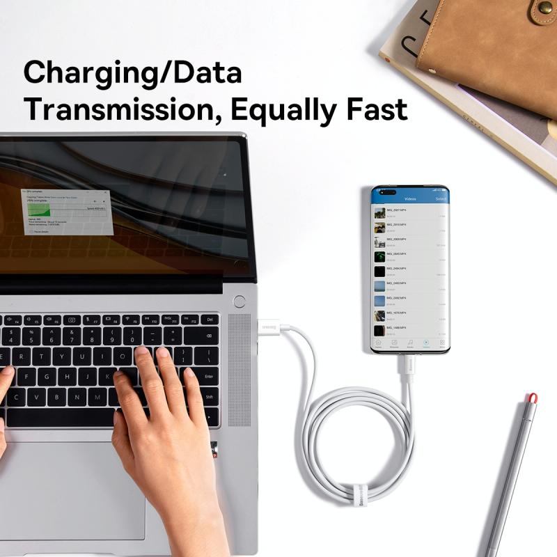 Baseus P10320102214-01 100W USB to USB-C / Type-C Fast Charging Data Cable, Length: 1m(White) (Baseus)