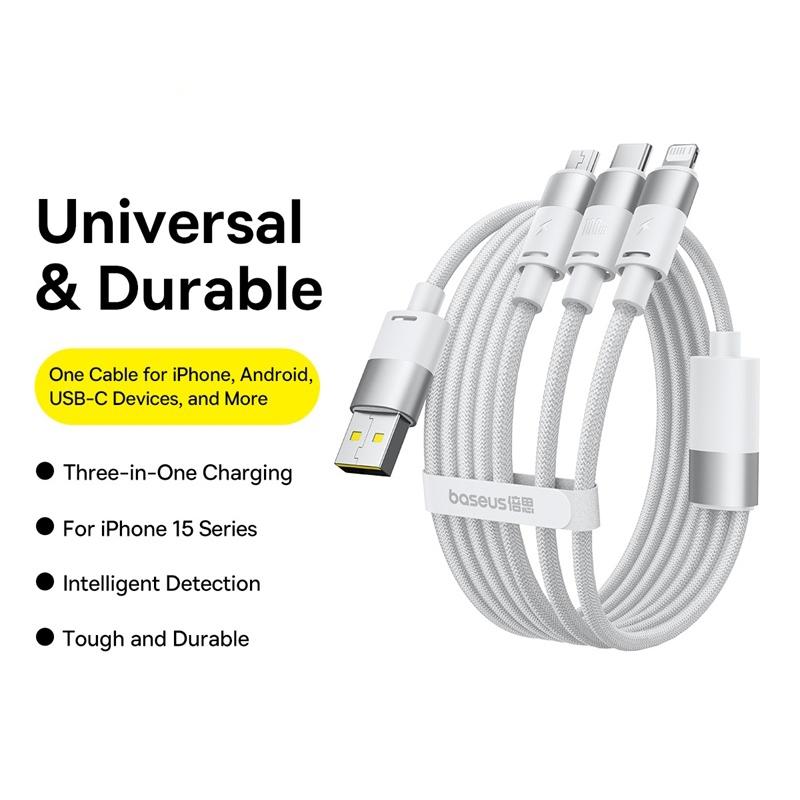 Baseus StarSpeed 1.5m USB to Micro USB, 8 Pin, Type-C 100W Fast Charging Data Cable 18W for iPhone(Moon White) (Baseus)