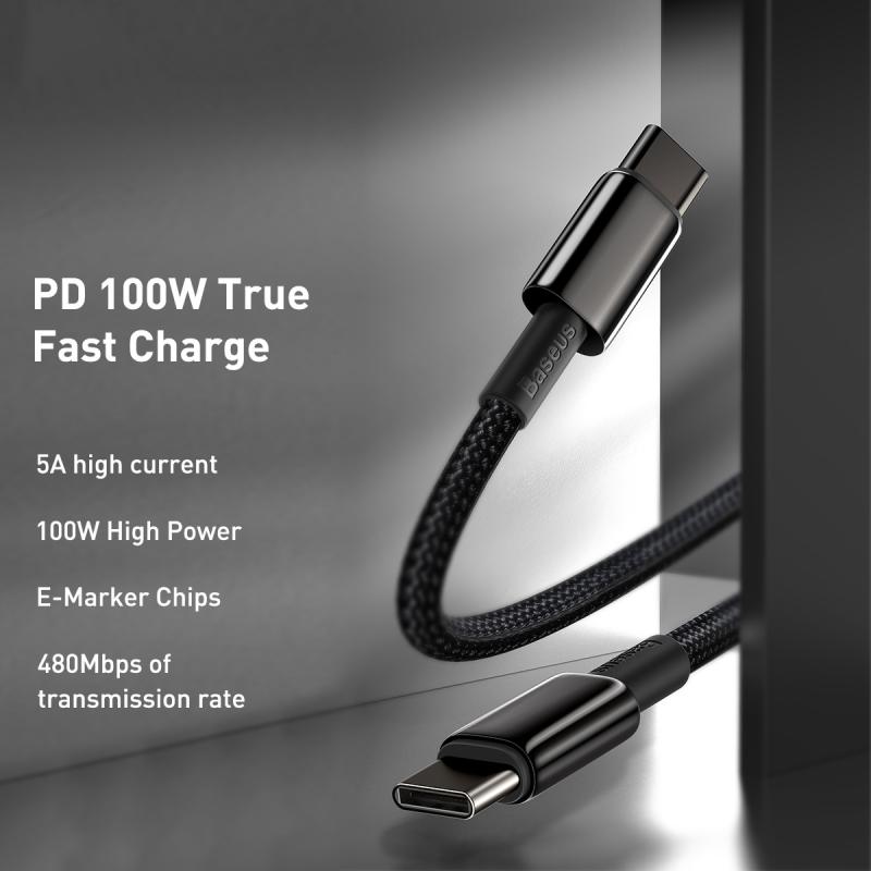 Baseus Tungsten Gold Series 100W USB-C σε USB-C Καλώδιο Φόρτισης/Δεδομένων 1m (Μαύρο)