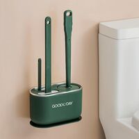 3 In 1 No Punch Wall Mounted Toilet Brush Household TPR Bristles Bathroom Cleaning Brush With Base(Dark Green)