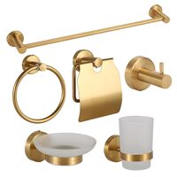 6-in-1 Stainless Steel Bathroom Hardware Set - Towel Bar, Ring, Toilet Paper Holder, Hooks, Soap Dish, Cup Holder for Shower Wall Organization(Gold)