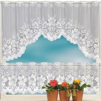White Translucent Coffee Curtain Tulle Lace Sheer Warp Knitted Jacquard Curtains Bedroom Curtains, Size:Upper And Lower Curtain(JHM-05)