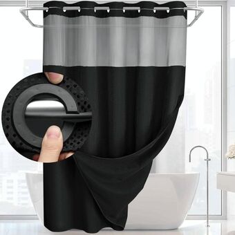 No Hook Waffle Shower Curtain with Removable Lining for Bathroom 72 x 75 Inch(Black 5)